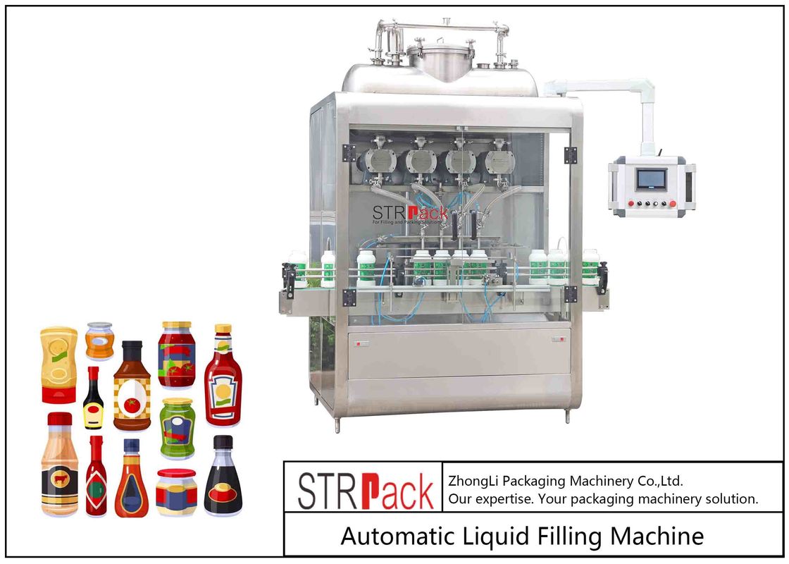 Машина STRPACK автоматическая жидкостная заполняя надежная и эффективная автоматизированная жидкостная заполняя машина от Китая. Она имеет систему деятельности с экраном касания и широкий диапазон заполняя применений. Она может точно заполнить контейнеры с переменными томами, и сделана прочной нержавеющей стали. Машина STRPACK автоматическая жидкостная заполняя соответствующая для диапозона применения, от томатного соуса заполняя для того чтобы намочить зубы отбеливания забеливая завалку фармацевтической пластиковой бутылки линейную жидкостную. Она также большая для завалки сока и напитка, со своей завалкой количественной косметической бутылки насоса поршеня сервопривода 4 голов жидкостной.